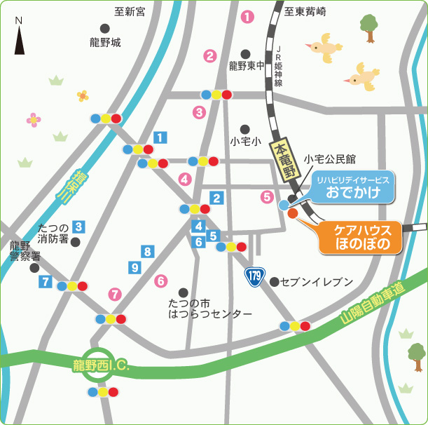 県道26号線-県道179号-龍野橋左折-堂本中信号左折すぐ